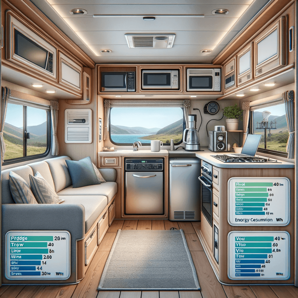 En camping-car, on travaille généralement sur une base de 12 V pour la batterie cellule. Donc, à la louche :