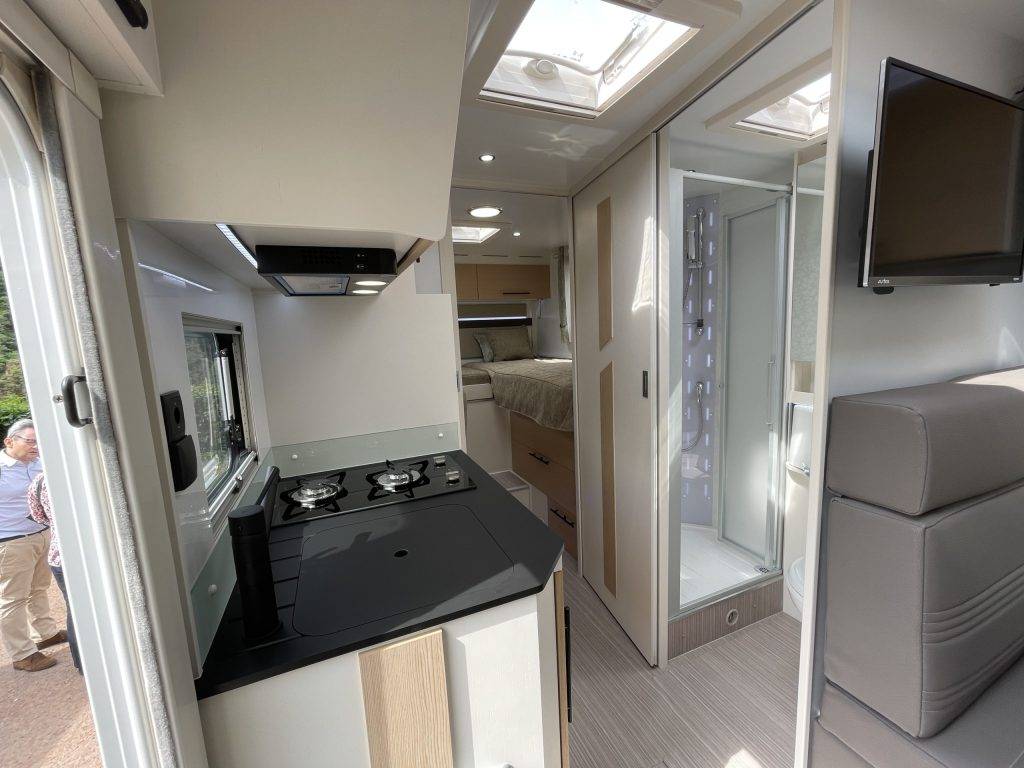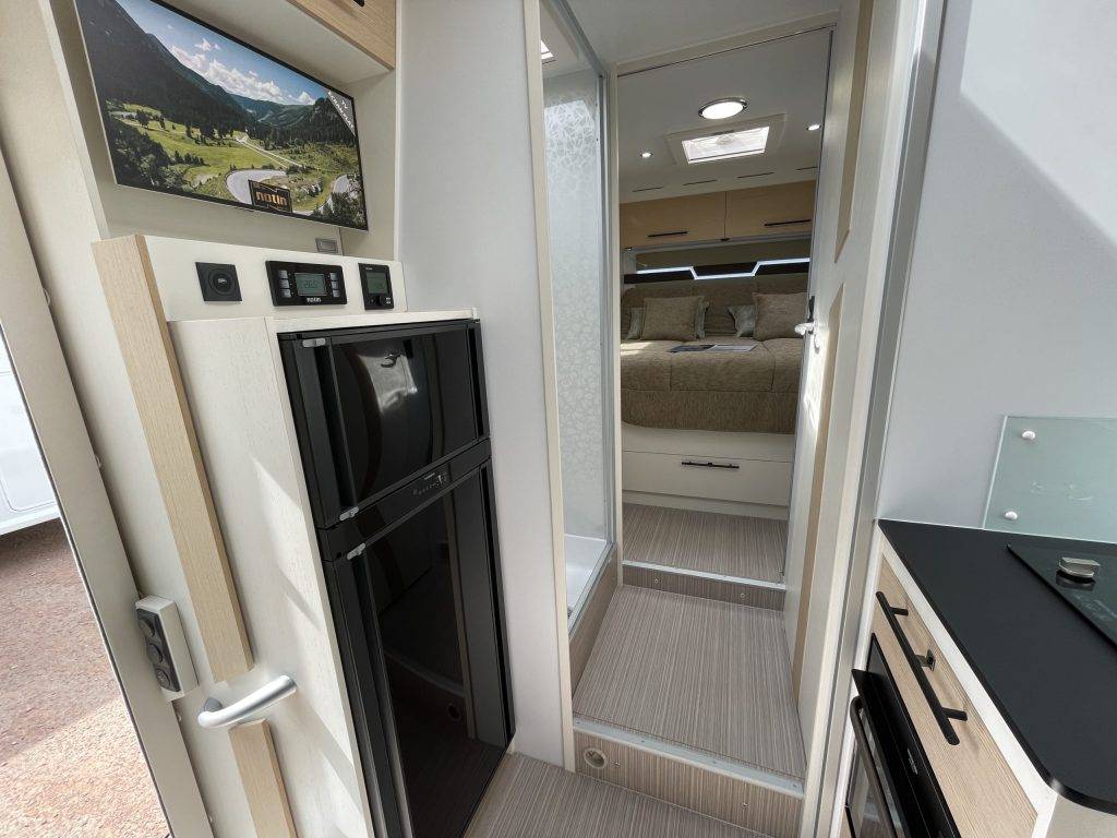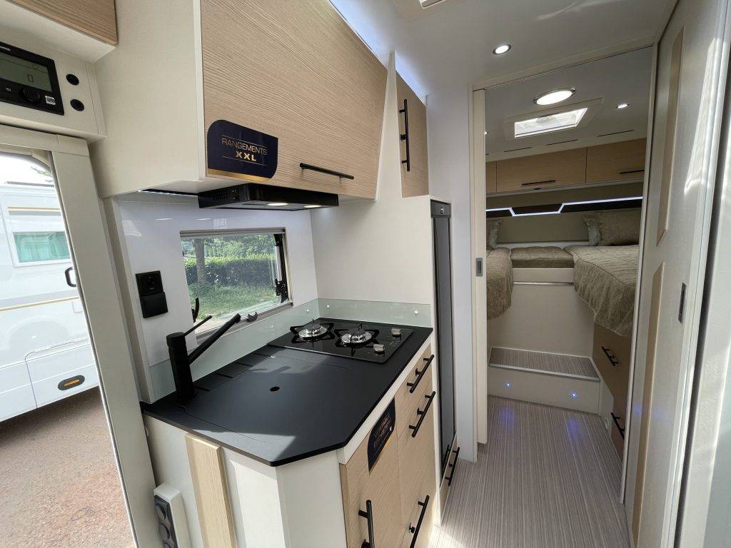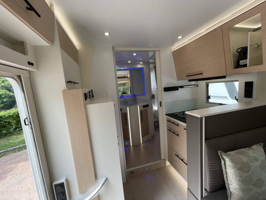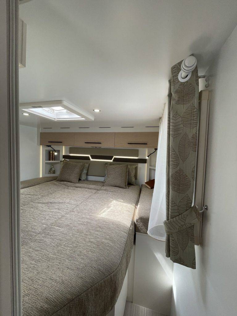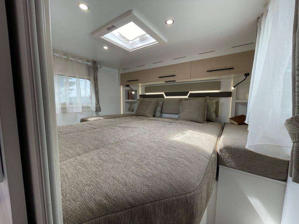 Ce profilé de 7M19 de long embarque un confortable lit central et est assemblé sur un porteur Fiat. Malgré ces dimensions serrées, tu as droit aux points forts de la marque avec, notamment, la légendaire douche