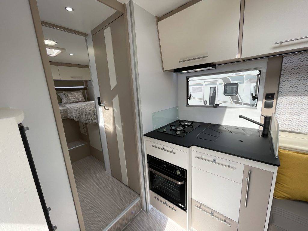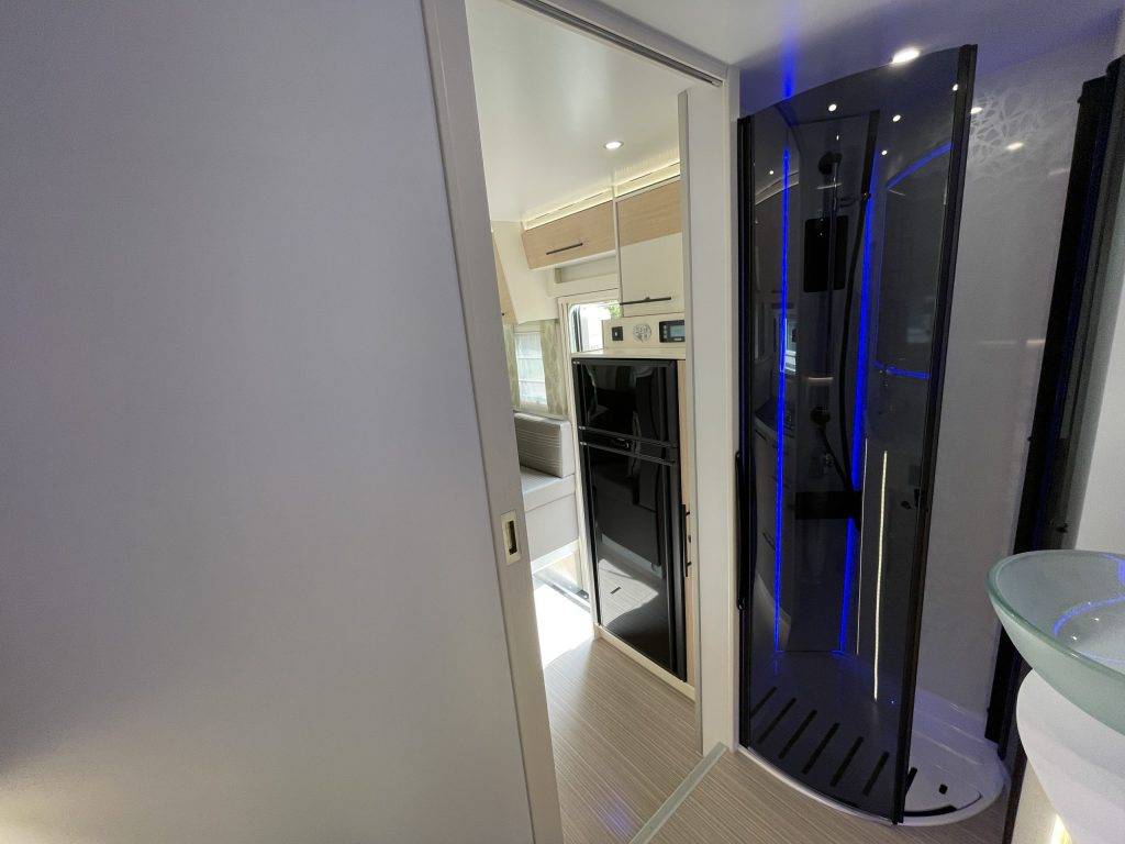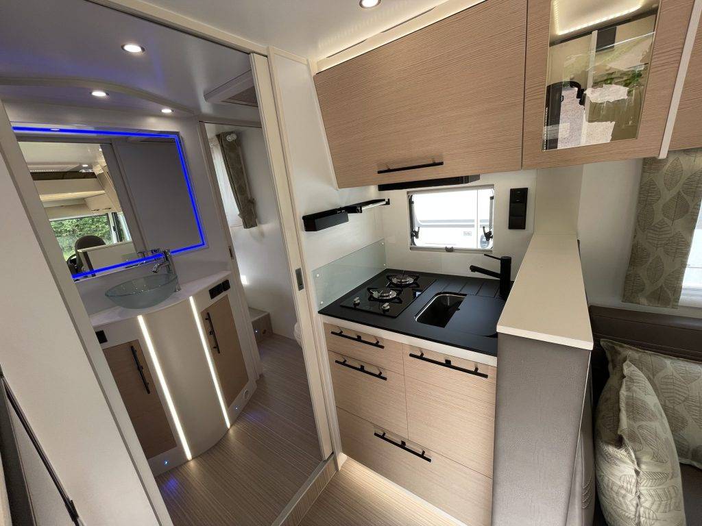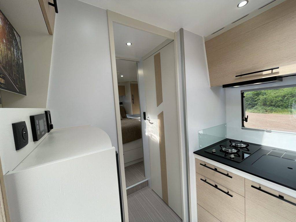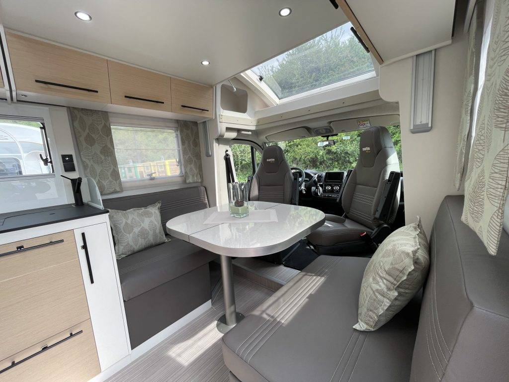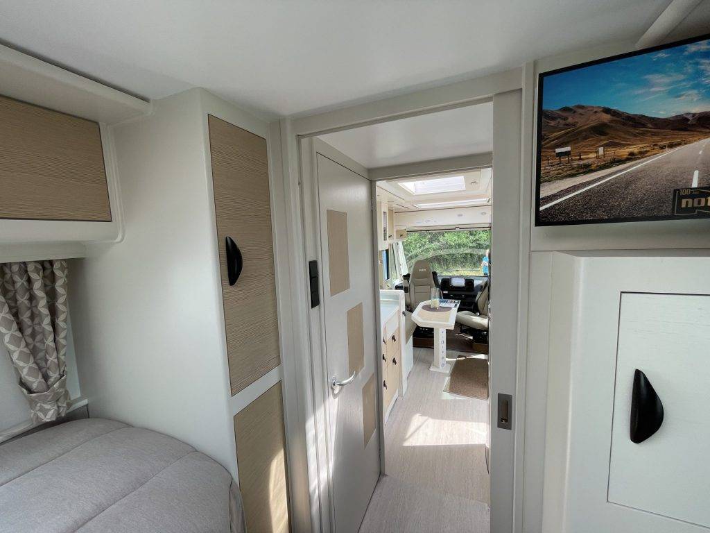 Ce profilé de 7M19 de long embarque un confortable lit central et est assemblé sur un porteur Fiat. Malgré ces dimensions serrées, tu as droit aux points forts de la marque avec, notamment, la légendaire douche