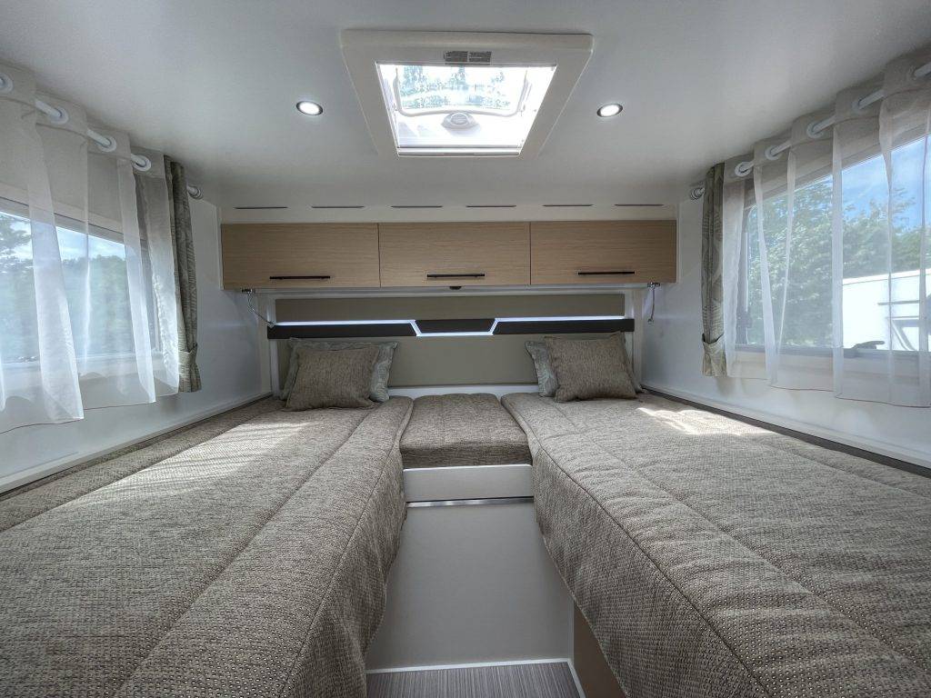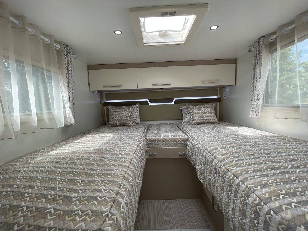 Ce modèle est le plus vendu de toute la gamme Notin et en tête des ventes de profilés légers de cette marque. aux même dimensions et à l’implantation identique à la version Alméria, ce modèle se différencie par l’espace nuit qui fait place à des lits jumeaux.