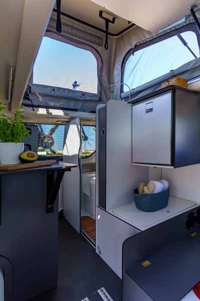 Le X-Cursion Van EDITION [PEPPER] est équipé d’un lit de pavillon confortable, d’une salle de bain avec douche et WC, ainsi que d’une cuisine entièrement équipée.