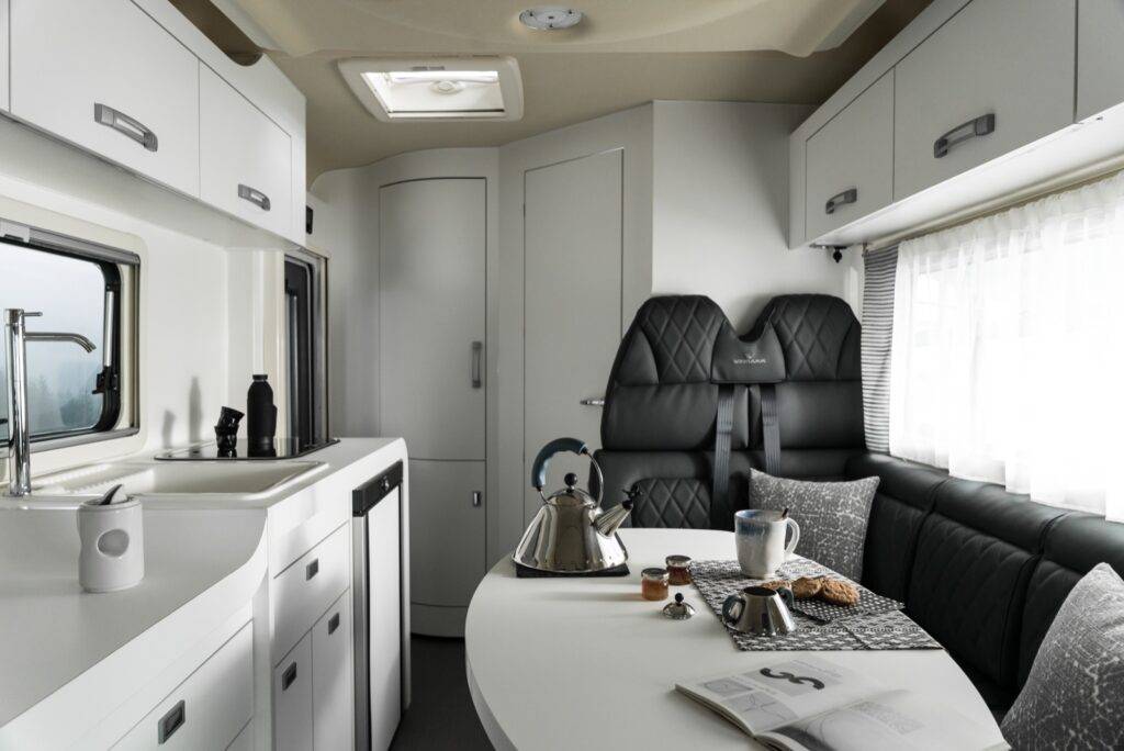 Le Tessoro 488, le plus grand des trois, ajoute 40 cm supplémentaires au salon, offrant ainsi un espace de vie confortable pour deux personnes ou plus.