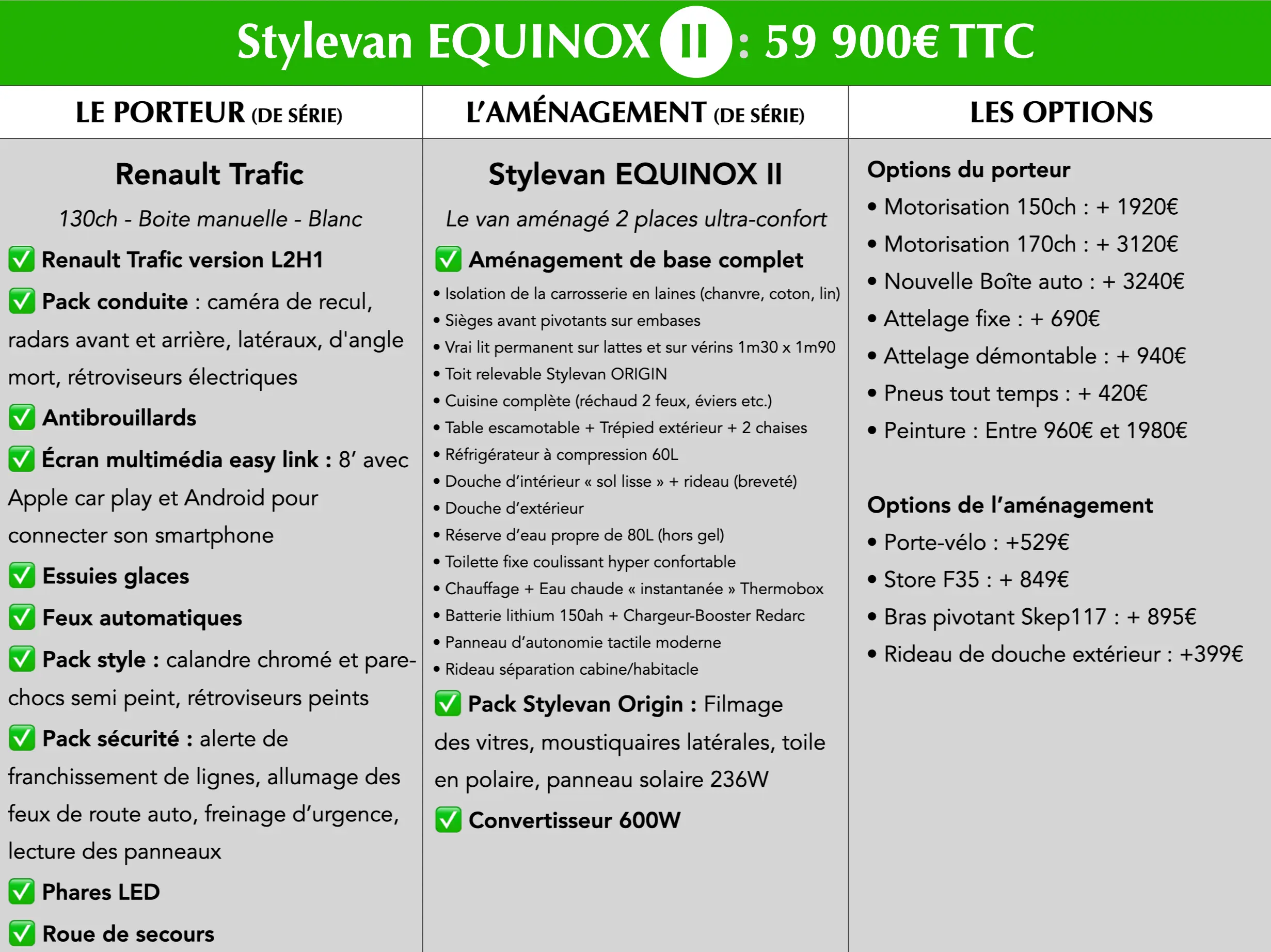 Toi aussi tu en as marre des fiches techniques indigestes et des arguments publicitaires façon pub de lessive ? Moi aussi. Alors posons-nous LA vraie question : est-ce que le Stylevan EQUINOX mérite vraiment son titre de van « ultime » à lit permanent à moins de 60 000 € ? Spoiler : j’ai a creusé, testé, comparé et même été visiter (espionner) l’usine… ! Et j’ai des choses à dire (en bien, mais pas que).