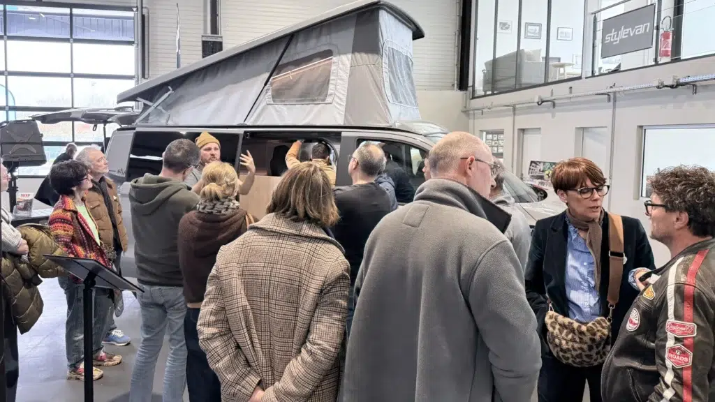 Environ 200 personnes. Un tirage au sort. Des Stylevaners qui avaient amené leur véhicule en configuration réelle — l’un avec la banquette couchée, l’autre avec l’avant orienté différemment — pour que les visiteurs voient la différence entre un Austral 4 et un Austral 5 en conditions vraies. Et un Webasto qui chauffe l’eau en continu, sans ballon, sans attente. Les détails qui font la différence quand on vit dedans.