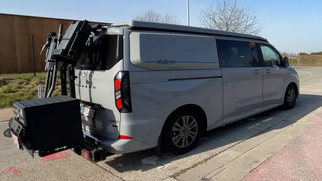 Le porte-matériel Skep change visuellement le van — il est imposant vu de l’extérieur. Mais les bras pivotants donnent un accès complet au coffre sans démontage. Et la capacité de charge ouvre des possibilités que les galeries de toit ne permettent pas, en restant sous les 2 mètres.